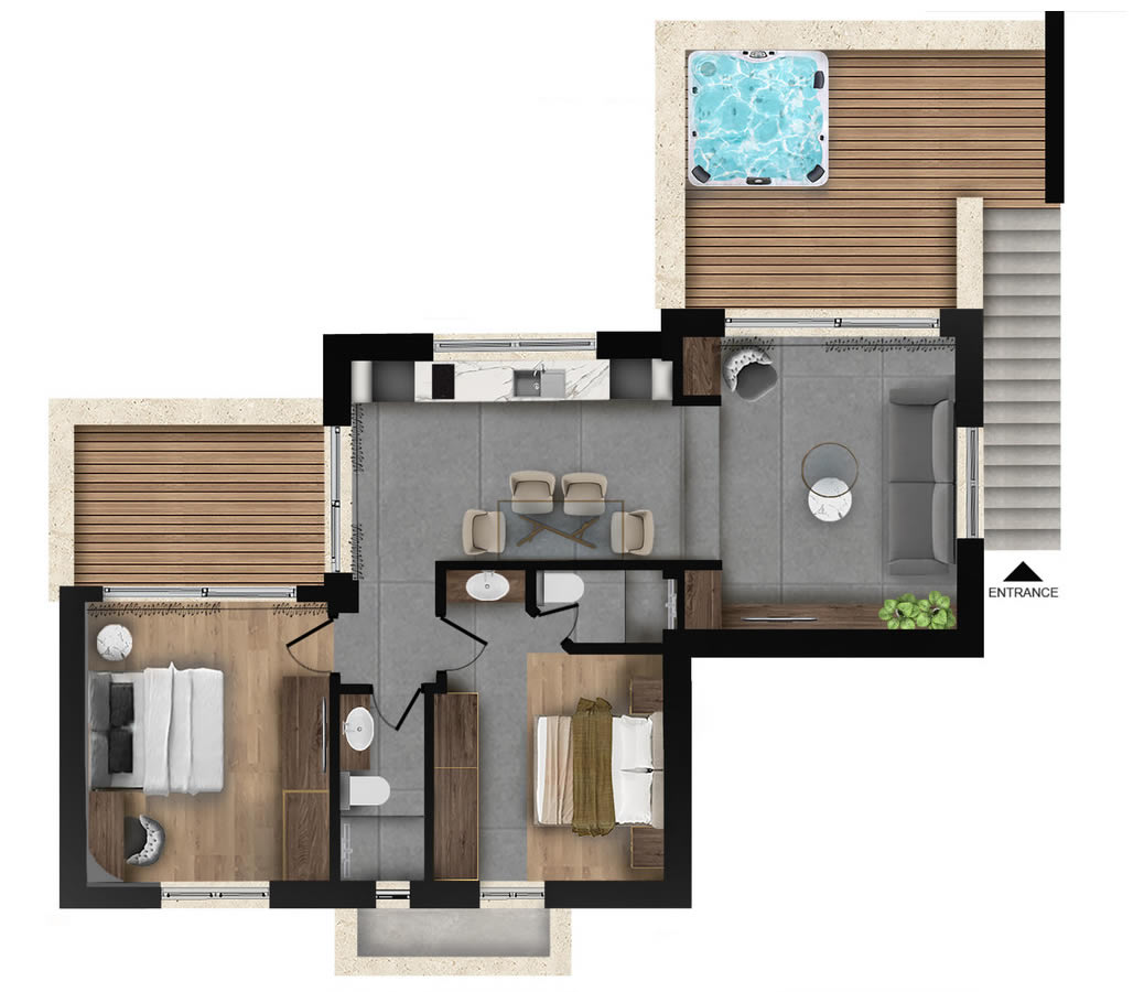 2 Bedroom / 2 Bathroom 82m² Villa | 36m² Balcony | Large Outdoor Jacuzzi | Occupancy: 4 (5 Optional)